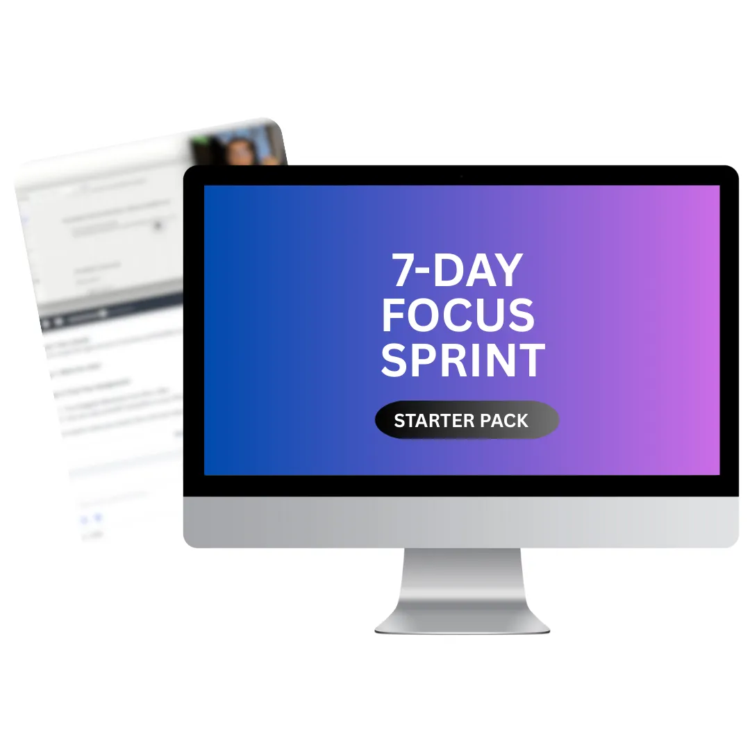 BONUS #1: 7-Day Focus Sprint Starter Pack: Your momentum-building daily plan. Designed to help you finish what you start — even when focus feels impossible.
